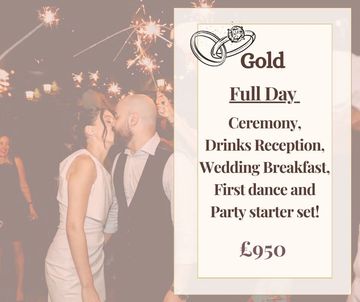 Everything in the Rose package, plus live music during your wedding breakfast – setting the perfect tone from start to finish. It’s ideal for couples who want to keep the atmosphere flowing seamlessly through the day.
